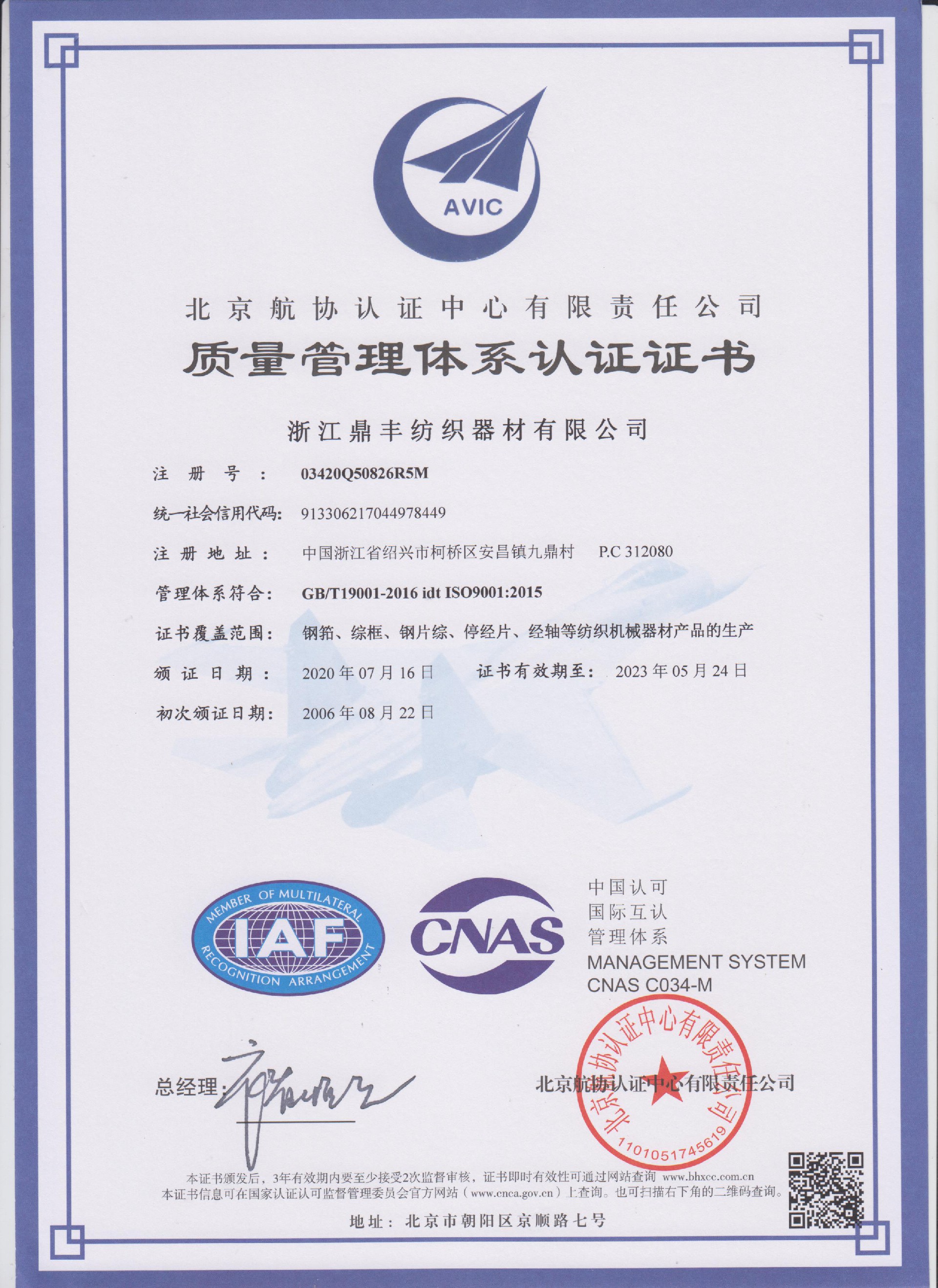 公司現(xiàn)有固定資產(chǎn)6000余萬元,員工300余人,現(xiàn)具有年產(chǎn)噴氣異型筘12萬米,劍桿筘32萬米,噴水筘5萬米,綜框20萬片,鋼片綜2億片,停經(jīng)片1.5億片, 織軸1.2萬套的生產(chǎn)能力。公司“越泉”商標(biāo)被評為“中國馳名商標(biāo)”。公司通過ISO9001 :2015國際質(zhì)量體系認(rèn)證,ISO14001:2015國際環(huán)境管理體系認(rèn)證,ISO45001:2018國際職業(yè)健康安全管理體系認(rèn)證,噴氣織機(jī)用鋼筘和織機(jī)用鋁合金綜框獲得“浙江制造”品牌認(rèn)證,公司擁有自營進(jìn)出口權(quán),產(chǎn)品暢銷全國并遠(yuǎn)銷印度、巴基斯坦、土耳其、埃及、哥倫比亞、意大利等國家和地區(qū)。